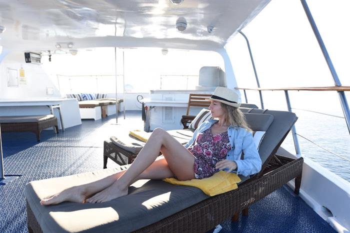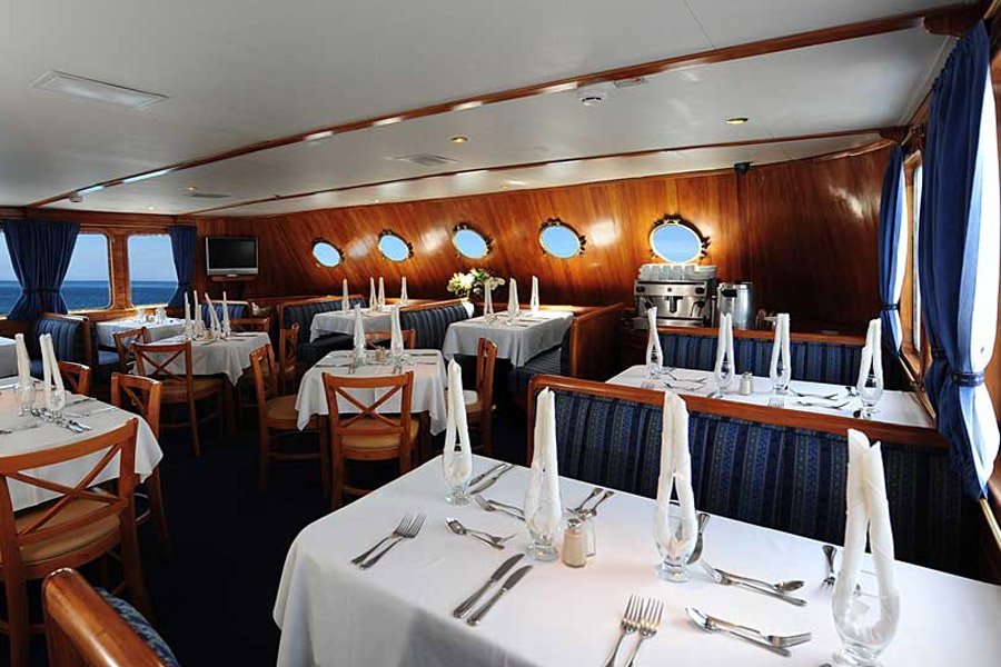 Built in Germany, the Coral 1 is a modern and spacious motor yacht to give a unique Galapagos tour an exclusive touch. The entire interior is made of teak wood and fully carpeted. She has ten cabins located on two decks (2 cabins with single upper and lower berths, 6 cabins with lower double and upper single berths, 2 superior cabins on the upper deck with double beds). Each cabin has its own full private bath and is handsomely decorated with wooden fixtures.
