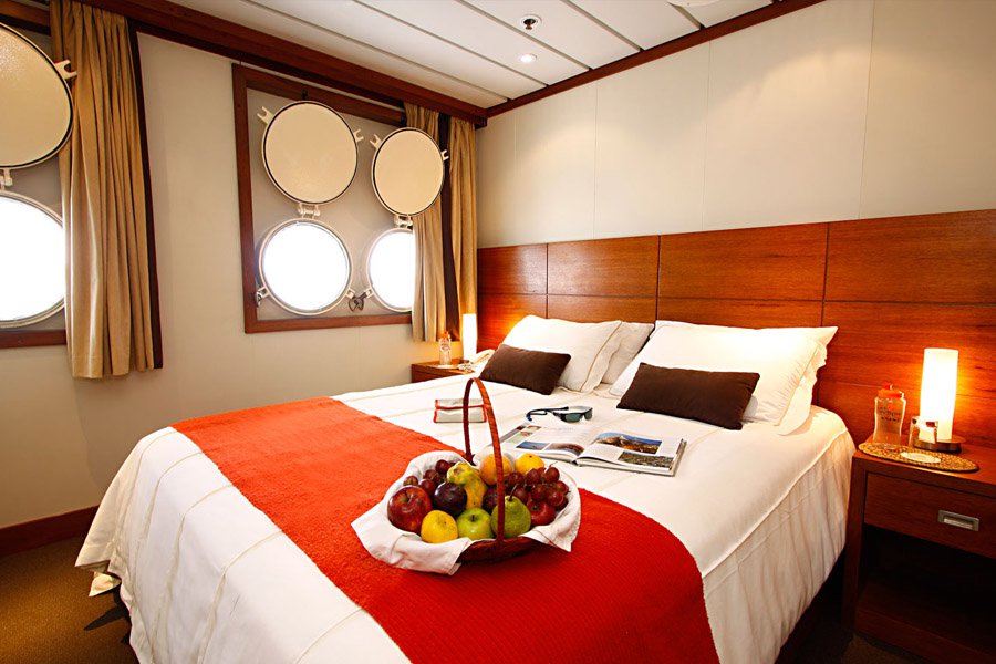 Every cabin boasts either picture windows or large portholes, providing a view of the surrounding waters. All the ship’s twin beds can be converted to king-size beds upon request.
