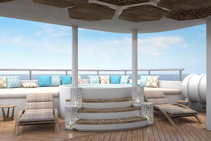 In addition to better stability, the design of the Elite allows for more space for everything on board, including social areas and golden suites. Guests of all ages enjoy the ample, semi-covered sky deck, the al fresco dining area and the cozy bar-salon.