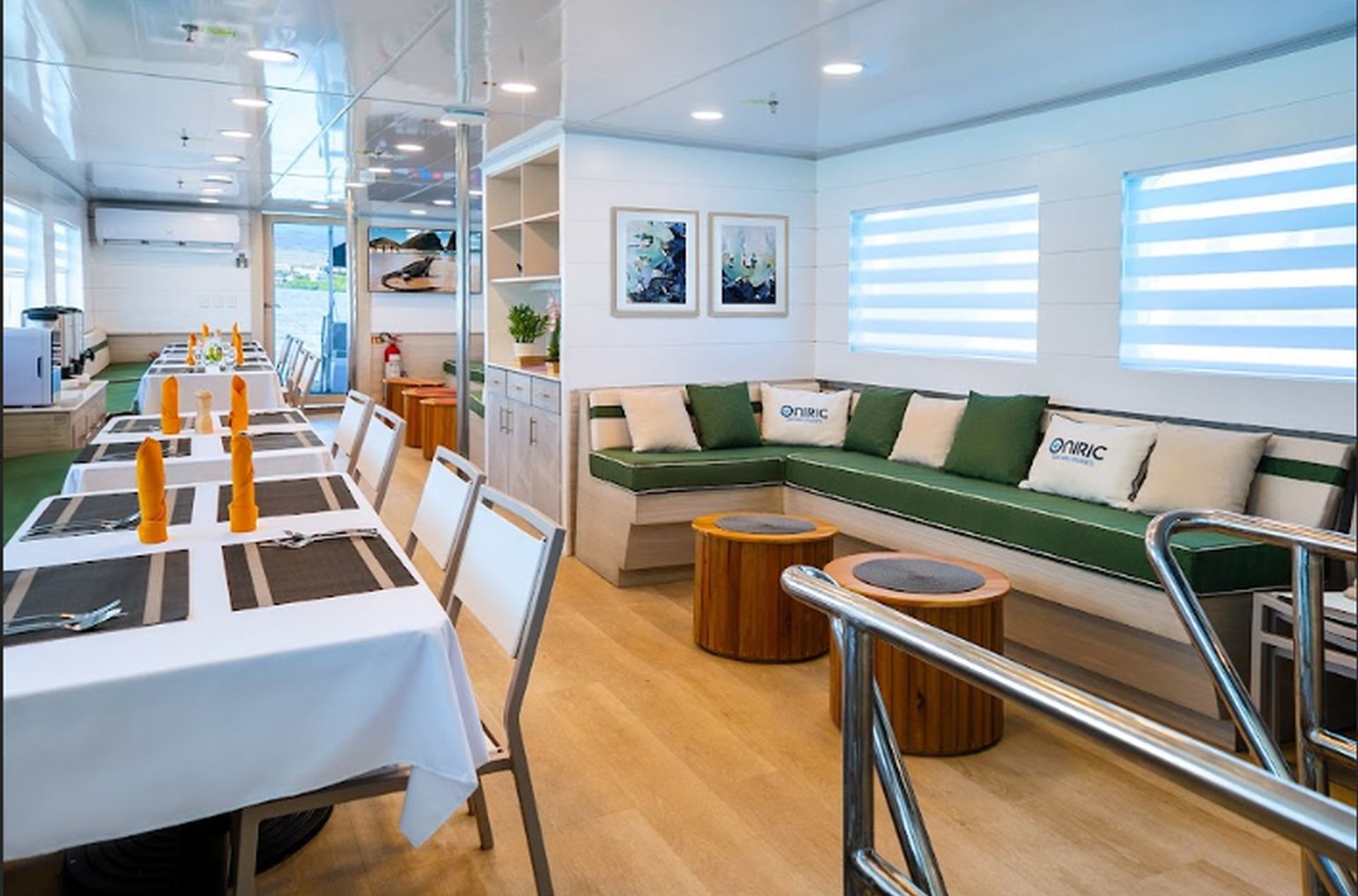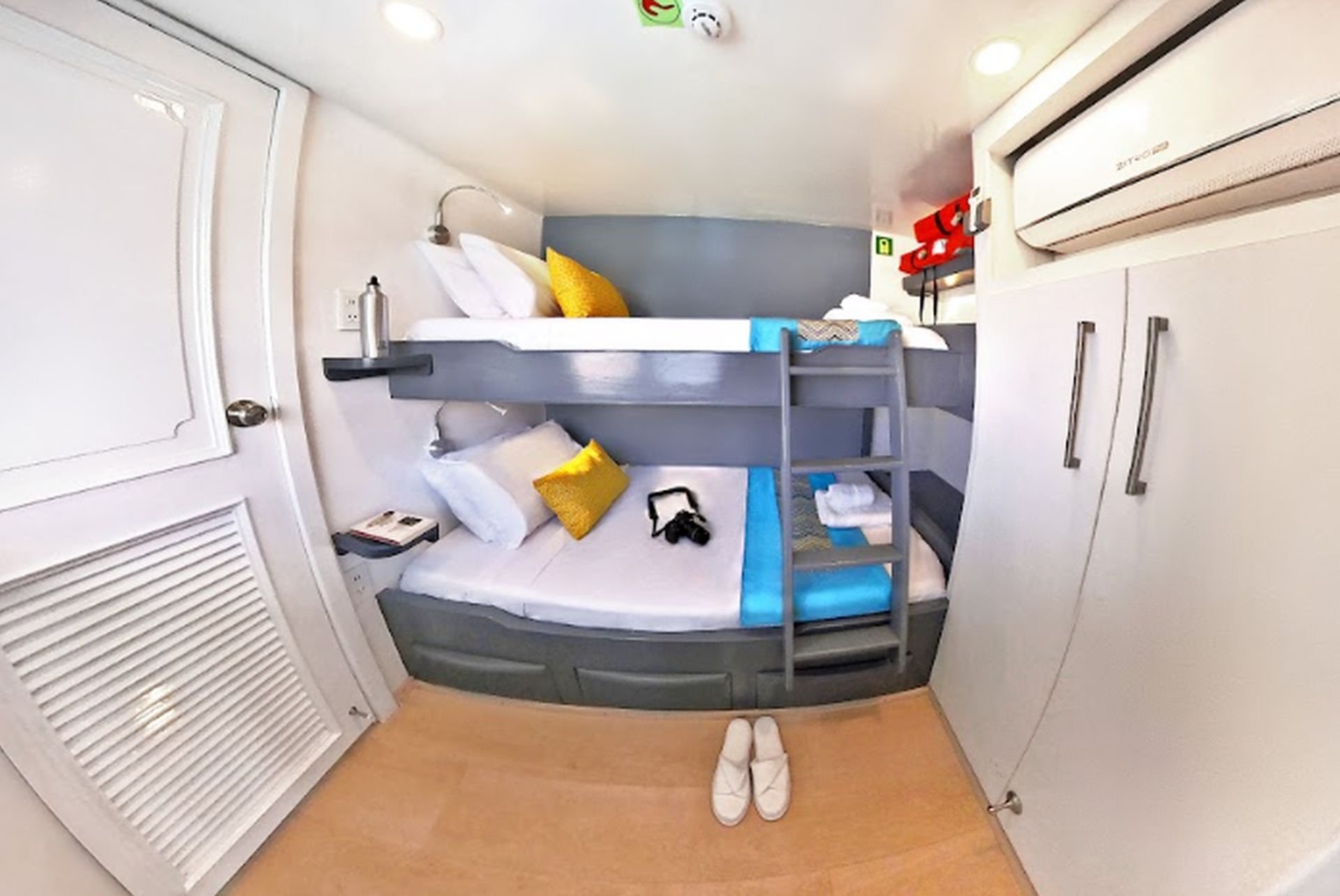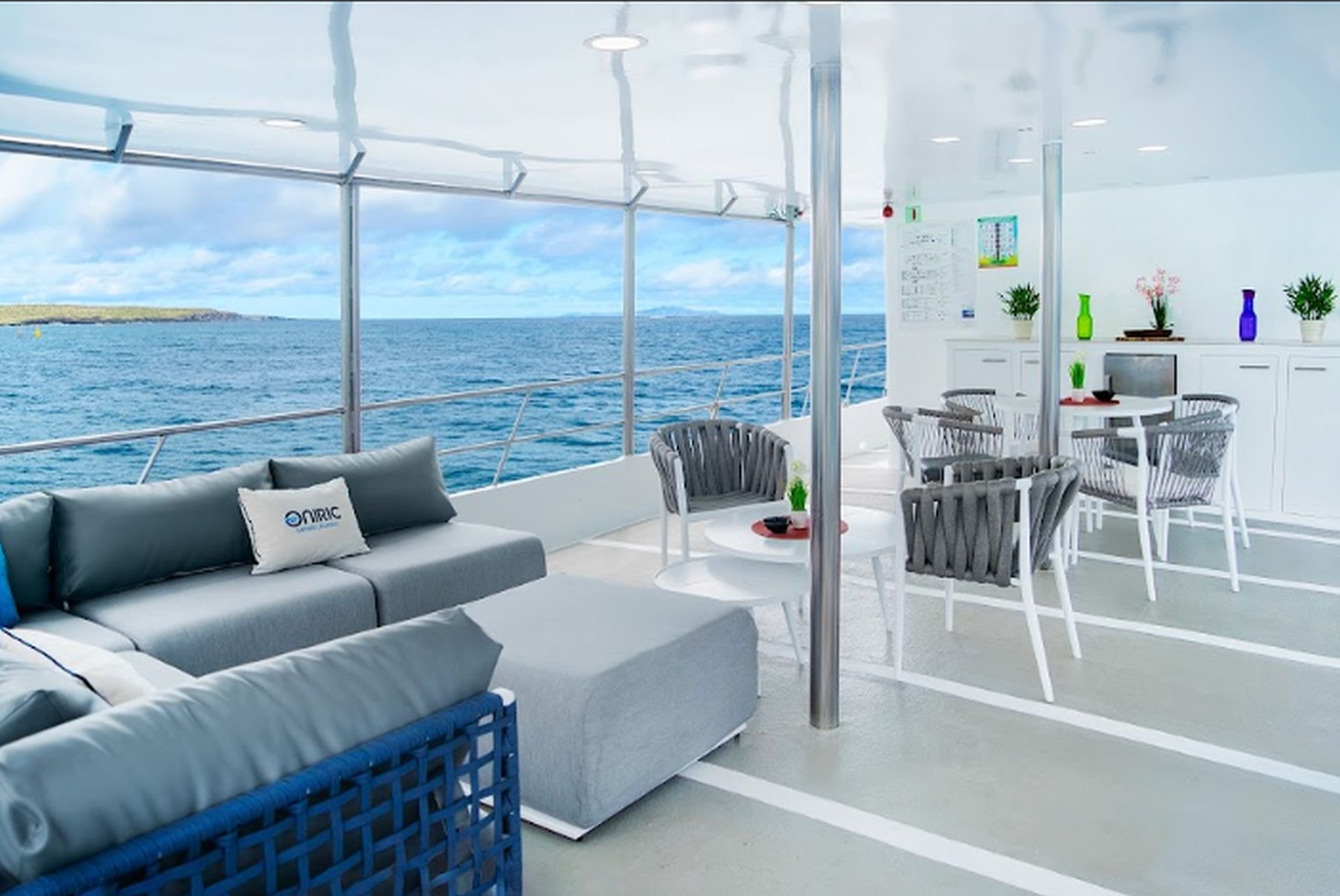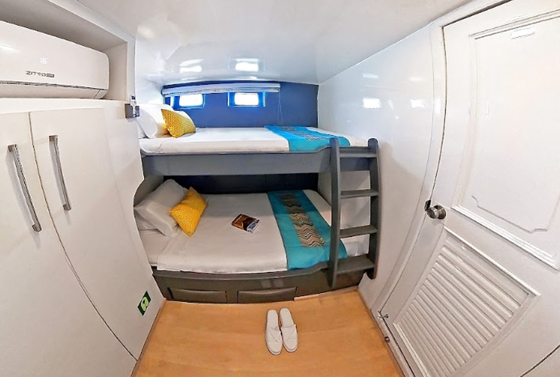 The renewed Estrella del Mar V.G. offers simple comfort and space on small ship cruises around the Galapagos. It’s a popular choice for those seeking a budget-friendly experience. There are eight cabins, four on the upper deck, and four on the lower deck, catering to a maximum of 16 guests per voyage. ESTRELLA DEL MAR has a professional crew, expert naturalist guides, open dining, and social areas.