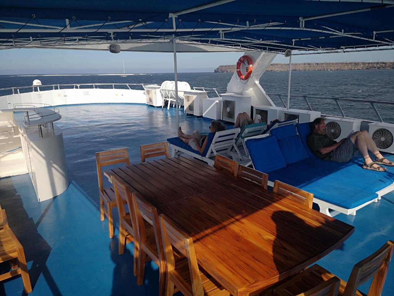 CABIN AMENITIES: All cabins are ensuite, with ocean view, two queen size beds, private bath-shower, and come with a small safe box and intercom system. |