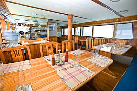 Fragata Yacht is a spacious and comfortable motor yacht, all decorated and equipped to provide a relaxed cruise in the islands. It offers lots of space and comfort for naturalist and diving cruises and enables the passengers to admire the incredible sub-marine world