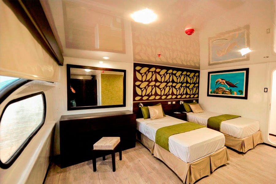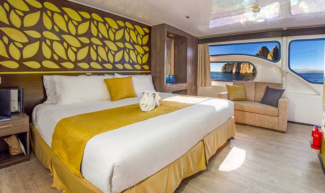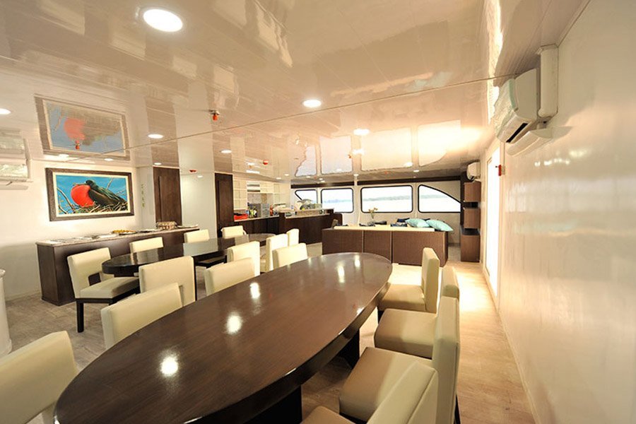 The EcoGalaxy is a First Class Catamaran offering fantastic year-round cruises to the Galapagos Islands. With an emphasis on comfort and sustainability, the EcoGalaxy Catamaran strives to reduce the negative impact of tourism in the area. Food is locally sourced products which support the local population, water is treated and reused to wash the boat, energy-saving lamps and faucets are used throughout, and cleaning products an toiletries are biodegradable. The experienced crew and naturalist guide also undergo frequent training programmes in customer service, conservation and wildlife to offer the highest service possible. Galapagos cruises offer fun, adventure, leisurely excursions and a great educational experience. Activities include hiking along extraordinary cliffs where seabirds nest, snorkelling with colourful marine life, panga ride to remote beaches and fantastic photo opportunities.