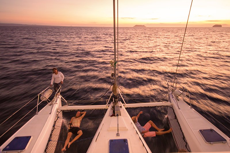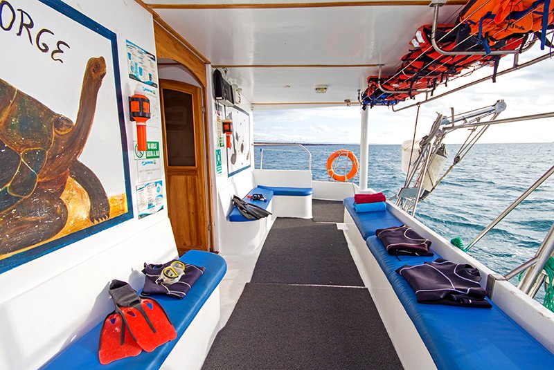 The S/C Lonesome George is a charming catamaran sailboat, built for cruising around the Galapagos in style. This beautiful yacht is the perfect choice for stylish trip in the Galapagos. Whichever activities your personal itinerary includes, snorkeling, diving, hiking, kayaking, sailing or just relaxing, the Lonesome George is the perfect choice for your vacation. This sleek catamaran accommodates up to 16 guests in 8 large double cabins with 4 full size beds and 4 single beds each equipped with toilets and showers with hot water and outdoor dining areas, full navigational equipment which features all US and EU communication and safety required electronics, a solar panel which makes it completely ecological with all instruments and systems working on battery. You will be able to experience firsthand the natural wildlife of the Galapagos Islands such as swimming with sea lions, observing blue-footed boobies or frigate birds nesting areas, and viewing incredible underwater life while snorkeling or diving. Special to this cruise is the opportunity to visit the active volcanoes that helped form these islands, and to camp on the beautiful white beaches, which other cruises cannot authorize. All the following activities are available on this amazing cruise and in addition you will be able have the unique experience of learning how the natives on these islands live and interact harmoniously with nature. You will learn how the ancestors of these people arrived, how the locals survive and interact culturally and socially with the Galapagueños.