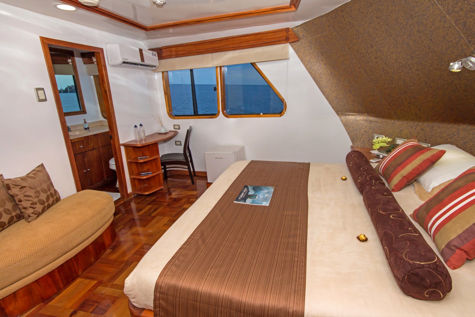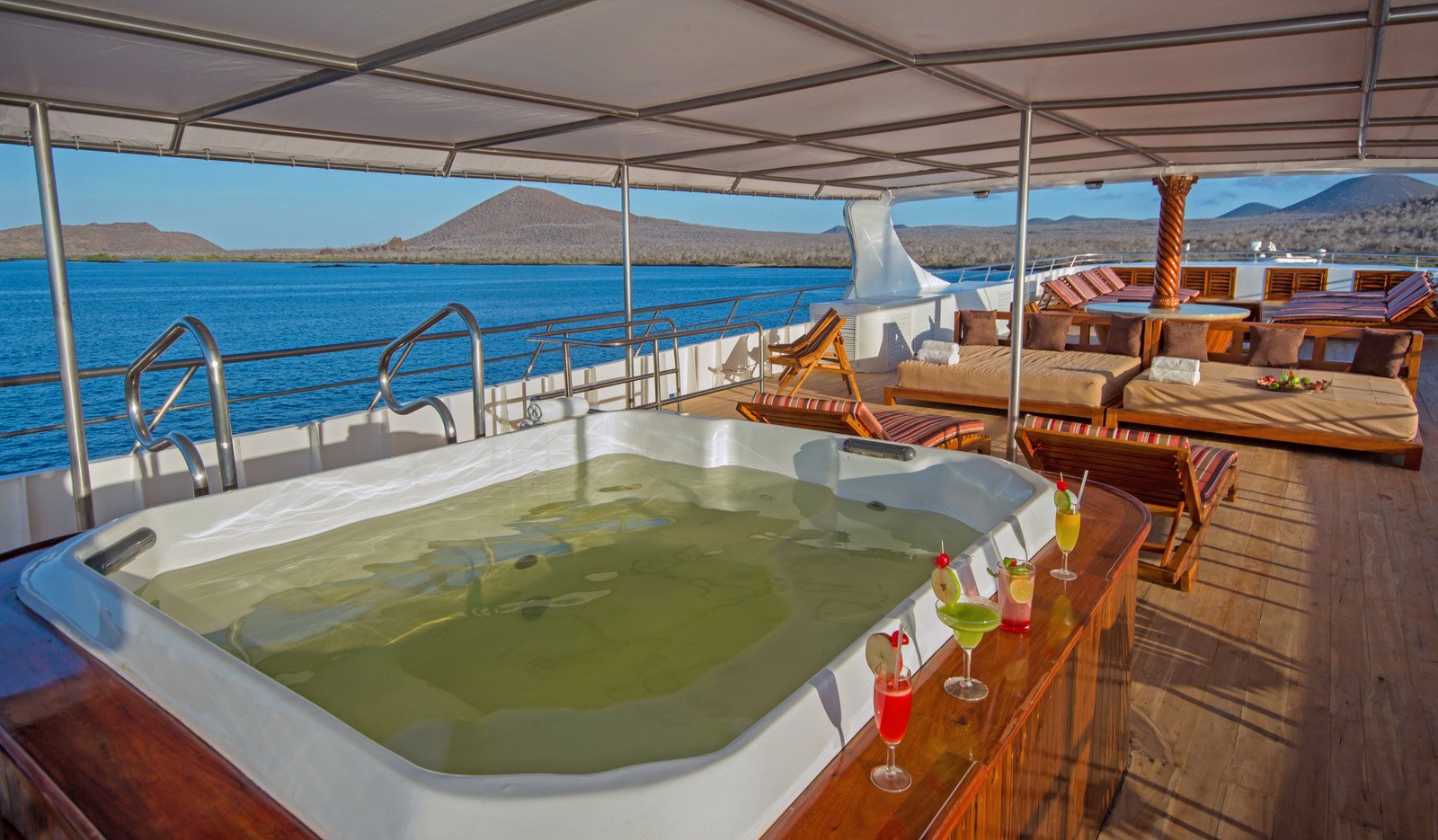 At GalaOdyssey we put in over 100 years of combined experience in the design of our brand new luxury yacht "M/V Galapagos Odyssey". You will not find a private yacht in the Galapagos Islands that offers more space, comfort or service on a 16 passenger boat. Amenities on board include a Jacuzzi, Al Fresco dining area, spa service, spacious sun and shade decks, combined with elegant interiors and a cabin layout that allows for picture windows that can be opened for fresh air flow.