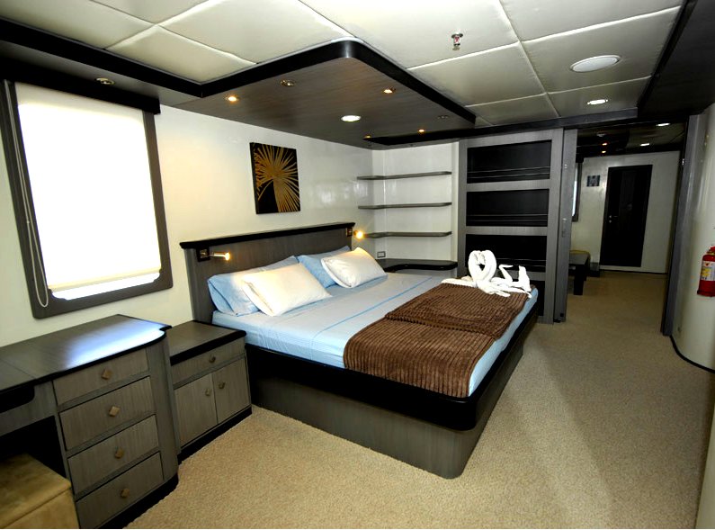 1 Master Suite with 2 balconies. 8 outside Junior Suite cabins with balcony and private bathroom, hot water, air conditioner, security box. |