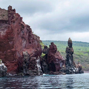 Buccaneer Cove is a testament to the fact that Santiago Island was once a refuge for British buccaneers. These pirates would anchor in the protected bay to make repairs and stock up on tortoise meat among other things. The steep cliffs, where hundreds of seabirds perch in front of the dark red sand beach, are a magnificent site.