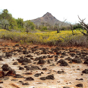 Highlights: Heading inland on the trail, visitors pass two small salt-water lagoons where it is sometimes possible to see flamingos and other shore birds. The trail continues on and circles Dragon Hill where visitors can observe land iguanas and their many burrows on the hillside