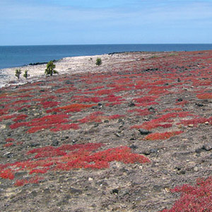 This small island with steep cliffs was formed by rising lava and is now covered by Opuntia cacti. It is also home to one of the largest sea lion colonies as well as colorful yellow and red land iguanas. The most characteristic plant is the Sesuvium. During the rainy season its color is a greenish to yellowish tone and in the dry season (end of June through January) a bright red.