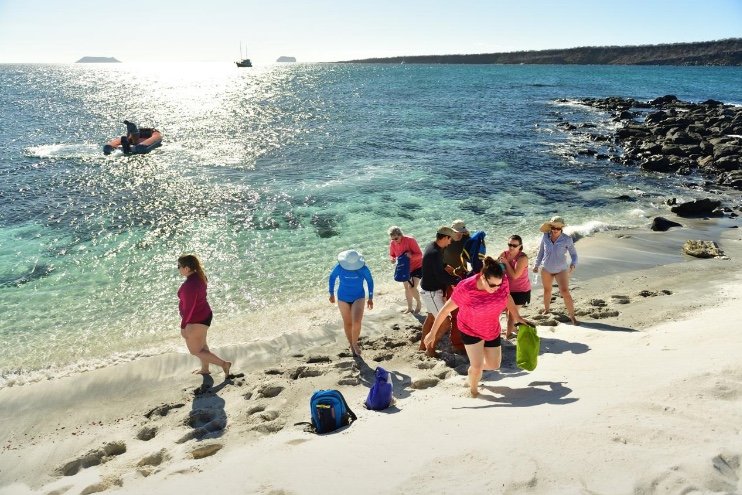 Am: Santa Cruz Island bay tour, includes snorkeling in La Loberia and hiking around the island. We will visit the Shark Channel (Tintoreras) and the Lovers Channel (Canal Del Amor) then we will walk to the cristal clear waters of Las Grietas.