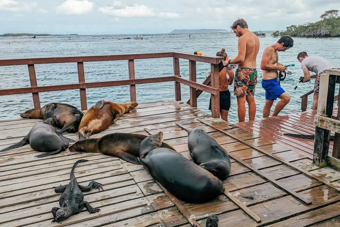 Galapagos Pinguins,White Tip Sharks, Flamingos, Green Sea Turtles, Blue Footed Boobies, Sea Lions, Marine Iguanas and many variety of Fish.