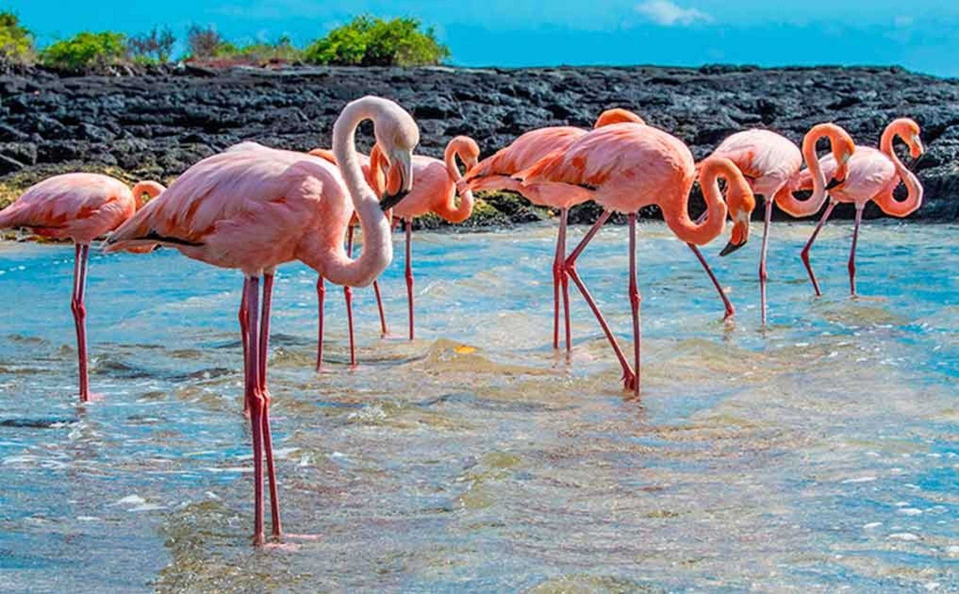 Visit the lagoon of the Flamingos, the tortise breeding center ¨La Galapaguera¨, have lunch, go to the Tintoreras, snorkel, return to Santa Cruz.