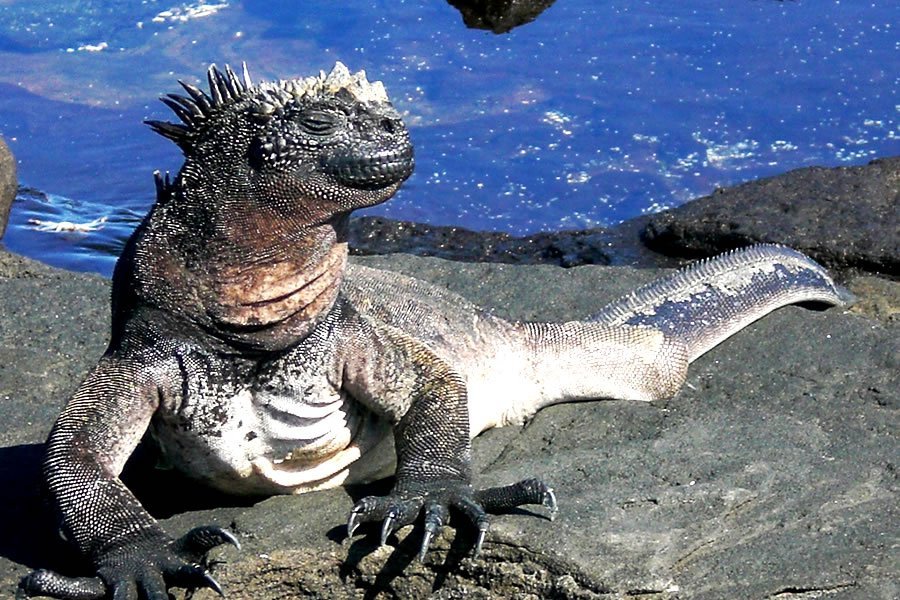 Sea lions, Land iguanas, Lava lizards, Swallow-tailed gulls, Lava gulls, Shearwaters, Storm petrels, Marine iguanas, Great frigate birds, Blue footed boobies, Brown noddie terns, Brown pelicans, White tip sharks, Sting rays, Sea turtles.