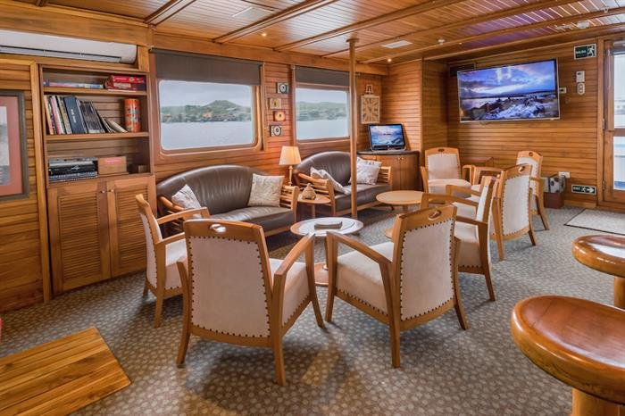 Coral II:The Coral 2, much like her sister ship Coral 1, is a spacious motor yacht. Built in Holland and handsomely designed, it gives your Galapagos tour an exclusive and unique touch. The entire interior is made of teak wood and fully carpeted. The Coral 2 has eleven cabins located on two decks (2 cabins with single upper and lower berths, 6 cabins with lower double and upper single berths, 2 superior cabins on the upper deck with double beds). Each cabin has its own full private bath and is handsomely decorated with wooden fixtures.