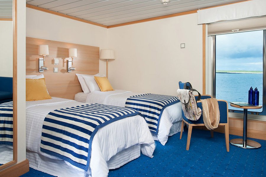 La Pinta offers a relaxed yet lavish expedition atmosphere, with plush outside cabins featuring fine cotton linen, duvets, and choice of pillows.