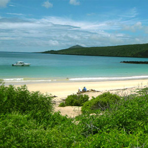 This site hosts a large flamingo lagoon where other birds such as common stilts and white-cheeked pintails can also be seen. The beaches on this island are distinct: The Green Beach is named so due to its green color, which comes from a high percentage of olivine crystals in the sand, and the Four Sand Beach is composed of white coral. More information on Floreana Island
